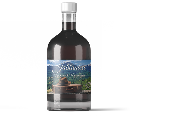 A homemade herbal brandy in the style of Jägermeister, named Jablanica — that already has a strong, authentic, and slightly wild ring to it. Homemade herbal spirit inspired by traditional recipes and the rugged landscapes of the Balkans. Strong and aromatic, Jablanica opens with the earthy scent of highland herbs and delivers a warming, slightly bitter taste that lingers with character.